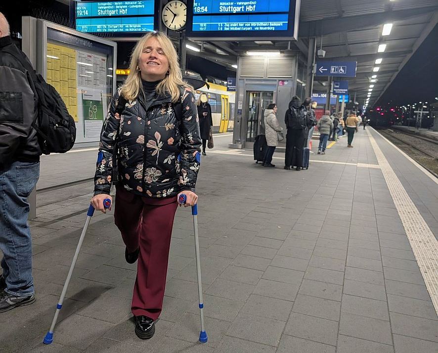 Vor knapp 3 Wochen habe ich mir beim Skifahren eine größere Verletzung am Unterschenkel zugezogen. Als blinde Person muss ich nun auf Krücken gehen, das heißt: Ich habe keine Hand mehr frei für meinen Blindenstock.