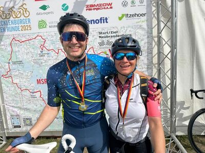 In unserem Fall hat das bei der Mecklenburger Seen Runde gut geklappt. Wir haben als Team sehr gut funktioniert. Wir haben uns gegenseitig motiviert, mein Partner hatte die Gangschaltung im Griff und ich unsere Versorgung mit Getränken und Essen. Wir hatten einen richtig schönen Tag zusammen mit etwa 5.000 Radlerinnen und Radlern.